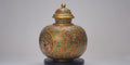 Marble Vase, with hand painted meenakari work (enameled work) 24k gold paint, inlaid with crystals.